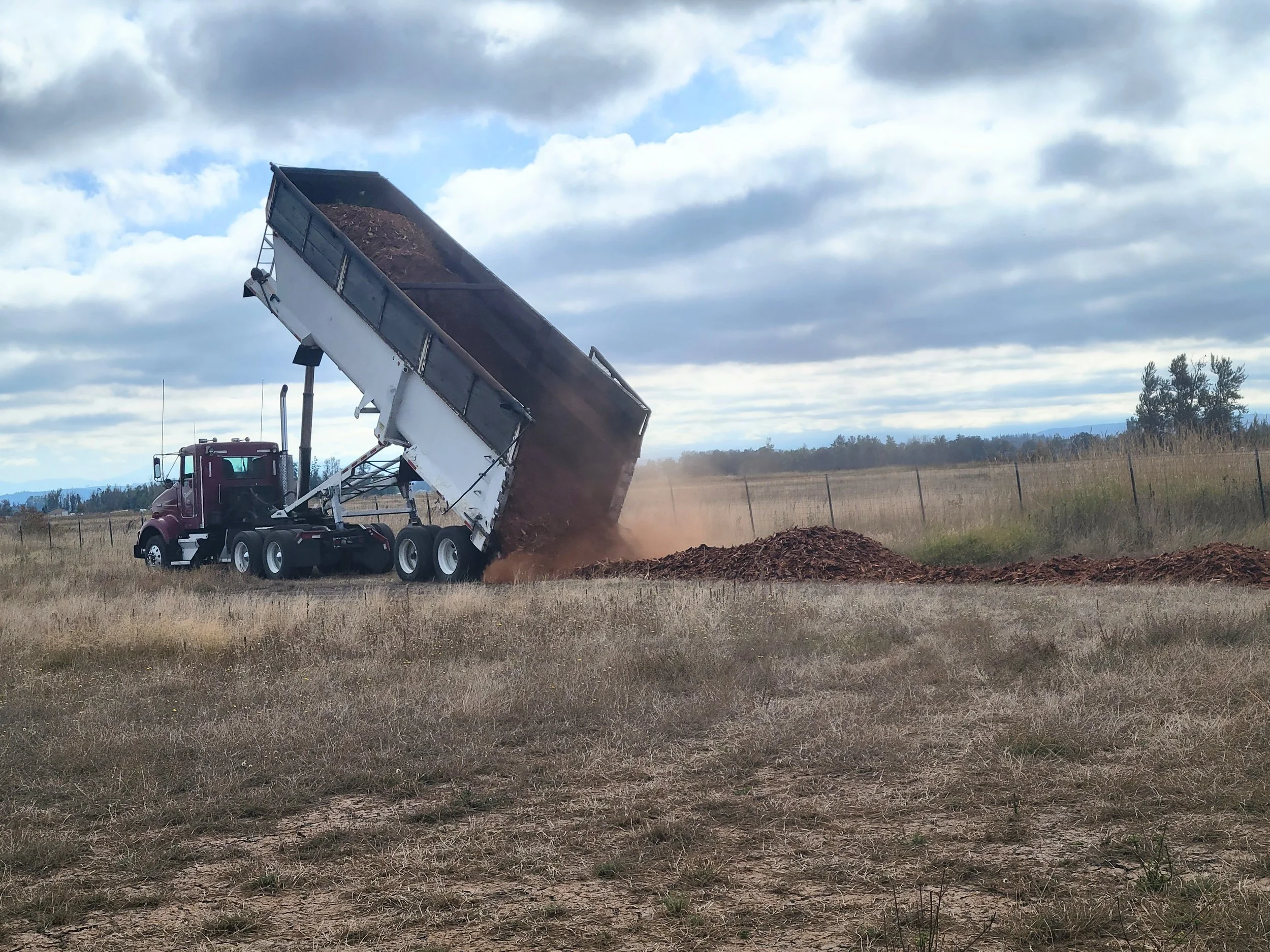 To install the hedgerow, several truck loads of hog fuel was dumped along the site of the hedgerow. The hog fuel will retain moisture in the summer and provide compost on site, nutrifying the soil. A ditch was dug with a single bottom plough. In November, the hedgerow plants were planted. An electric line was installed along the perimeter of the hedgerow to protect it from grazing.